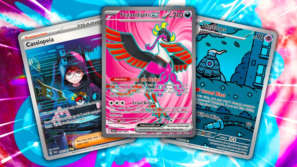 Fezandipiti ex – это не только красивая карта, с двумя мощными способностями, включая Cruel Arrow, которая наносит 100 урона покемону противника, используя всего 3 Colorless Energy, и способность Flip the Script, которая позволяет игроку взять 3 карты, если любой из его покемонов был отправлен в отставку на ходу противника.