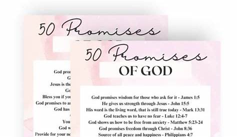 Вот 50 Божьих обещаний, которые вы можете выполнить, когда жизнь становится неопределенной. Нэнси Демос Вольгемут разделяет пятьдесят из этих обещаний. На протяжении всей Библии мы видим примеры того, как Бог давал и выполнял обещания своему народу. От обещания, которое он дал Моисею, как упоминалось в 1 Царств 8:56, до обещания вечной жизни в.
