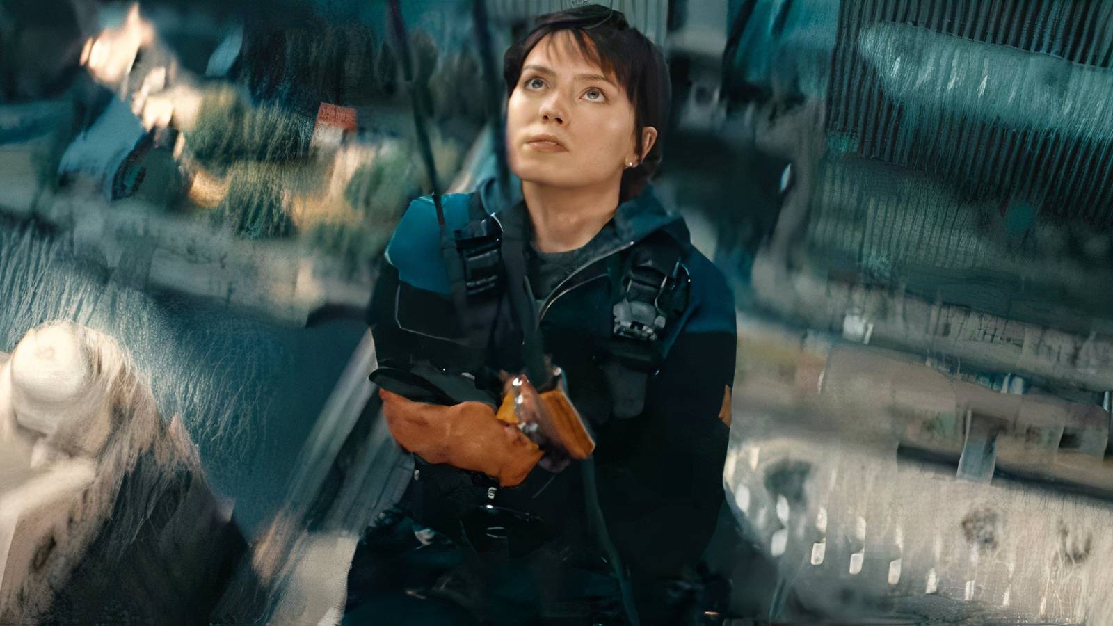 Дейзи Ридли, направляющая пистолет в Cleaner