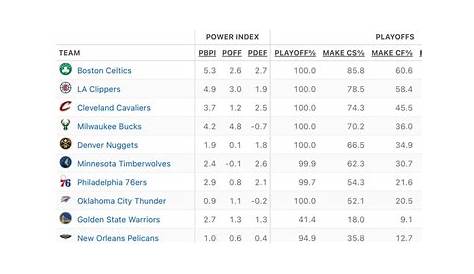 Bpi является лучшим предиктором производительности команды в сезоне. Индекс силы баскетбола NBA (bpi) Espn является мерой силы команды, разработанной командой аналитики ESPN. Bpi предназначен для того, чтобы быть лучшим предиктором производительности команды. Индекс силы баскетбола NBA ESPN (bpi) является мерой силы команды, разработанной командой аналитики ESPN.