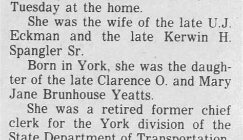 Большие некрологи из йоркского диспетчера и другие источники некрологов Пенсильвании.