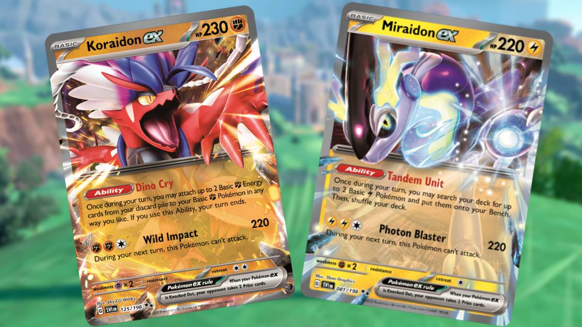 Глобальный релиз для расширения Pokémon TCG: Scarlet and Violet состоится 31 марта 2023 года, а коробки уже доступны для предварительного заказа, с специальной промо-картой Lechonk от The Pokémon Center. В расширении будут представлены шесть карт с золотым гравированием, включая Trainer, Energy и Pokémon ex, а также 10 специальных карт с иллюстрациями, представляющих редких Pokémon и Supporter. Также уже раскрыто 11 карт Pokémon TCG: Scarlet and Violet ex, включая Koraidon и Miraidon.