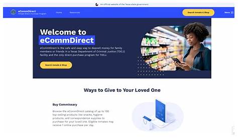 Посещение сайта ecommdirect для заказа. Комиссар и отдел целевого фонда миссия отдела комиссариата и трастового фонда заключается в предоставлении заключенным удобного способа покупки предметов, не меблированных. Назначенные преступником деньги для покупки многих вещей, которые им понадобятся в tdcj. Друзья и члены семьи могут использовать веб-сайт ecommdirect для отправки заключенным tdcj товаров на сумму до 60 долларов США каждый квартал, отмечает ecommdirect.