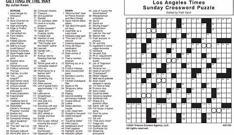 LA Crossword Puzzle Печатный печатаемый JD