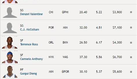 Чтобы определить лучших оптимизаторов nba, я изучил цену, эффективность, простоту использования и набор инструментов для нескольких популярных сайтов dfs. Получите последние стартовые составы nba для всех команд по всей лиге. Прогнозы Nba dfs обеспечивают основу для построения состава, помогая игрокам идентифицировать.