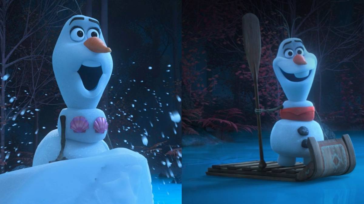 Олаф идеально воплощает короля Тритона, подчеркивая его впечатляющую физическую форму и называя Ариэль «мусорщиком». При обсуждении фильма, как только он умеет, он произносит несколько забавных фраз, например, описывая несчастных людей как «худое креветки». Он также получает отличный отсылку к одной из его самых запоминающихся фраз из оригинального Frozen, когда он воссоздает смерть Урсулы и говорит: «Меня пронзили».