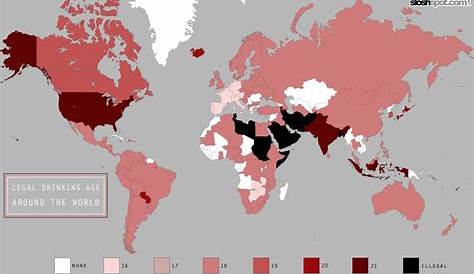 На этой карте показан легальный возраст употребления алкоголя во всем мире