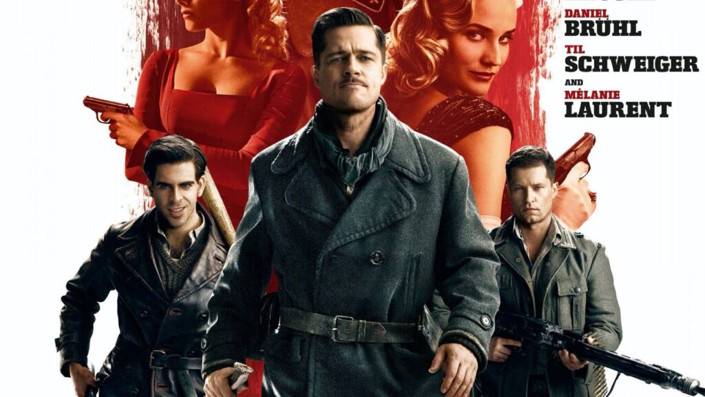 Inglorious Basterds (и, если я не ошибаюсь, никогда не объясняется, почему его не называют просто Inglorious Bastards) – это история о небольшой группе еврейских американских солдат, собранных лейтенантом Альдо Рейном (Брэд Питт), чтобы напугать солдат Третьего рейха, жестоко убивая («мы не задерживаем пленных») и вырезая головы нацистам. В конечном итоге они сталкиваются с Шоссаной (Мелани Лор), молодой еврейской женщиной из Франции, чья семья была убита, когда она была еще ребенком, и которая сейчас владеет кинотеатром в Париже.