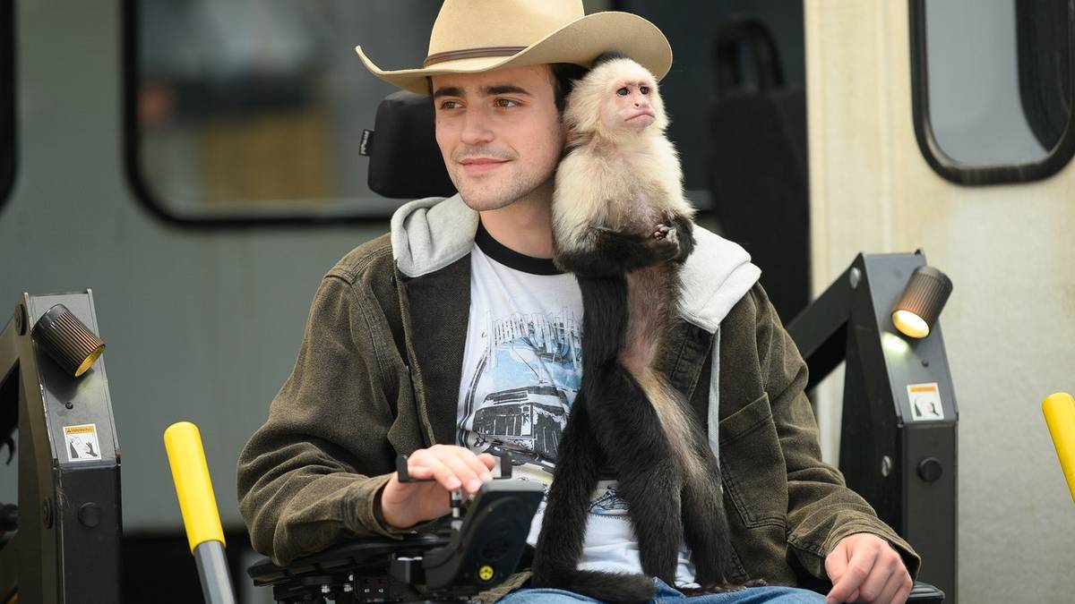 Чарли Роу и обезьяна-капуцин Али в фильме "GIGI & NATE"