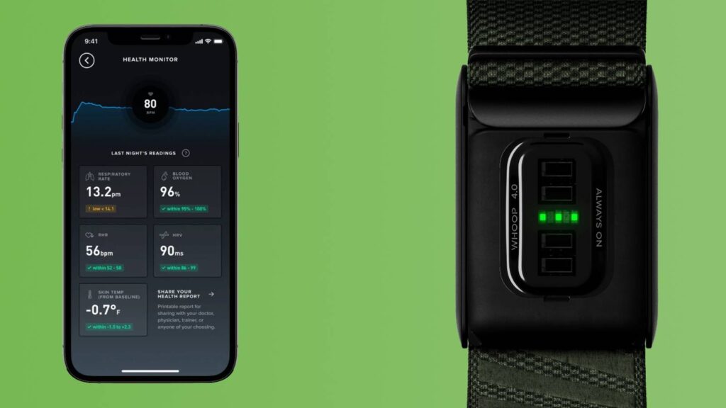 Учитывая, что Whoop 4.0 отслеживает лишь несколько продвинутых показателей, их производительность является ключевым фактором, определяющим ценность устройства. Он отслеживает уровень кислорода в крови, частоту дыхания, количество сожженных калорий, частоту сердечных сокращений в состоянии покоя, вариабельность сердечного ритма и температуру кожи — и использует эти показатели для создания показателей нагрузки и восстановления.