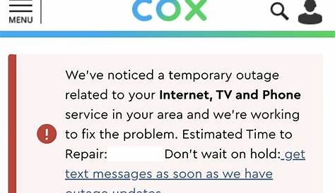 У Cox нет возможности сообщить об отключении, но вы можете увидеть, подтвердил ли Cox широко распространенное отключение в вашем районе, войдя в свою учетную запись Cox или используя Cox.