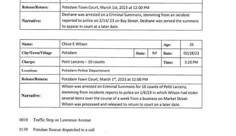 Potsdam Village Police Dept. Blotter 28 февраля 2023 PDF