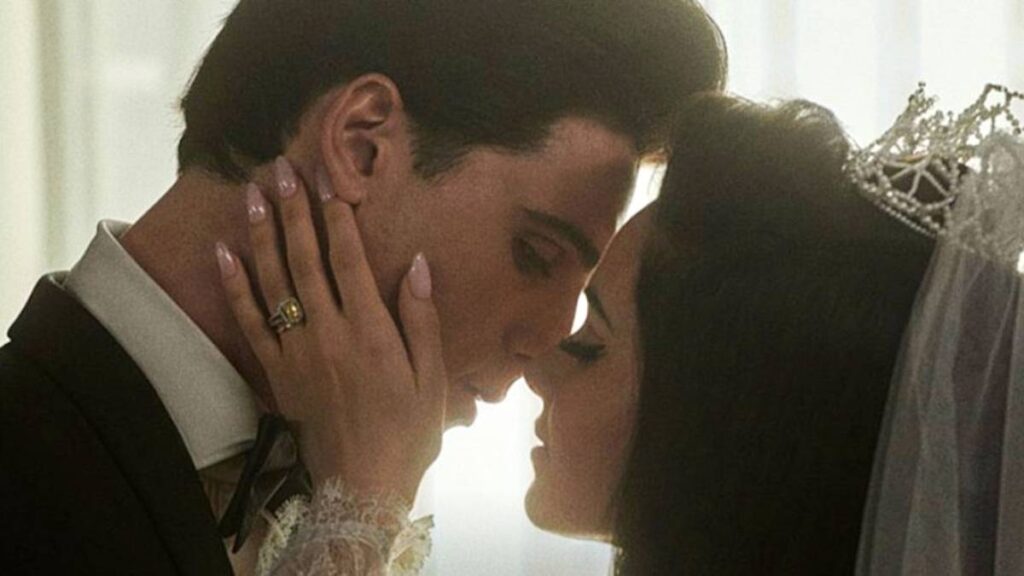 Кайли Спен как Присцилла Пресли и Джейкоб Эорди как Элвис Пресли, состоящие в браке в «Присцилле»