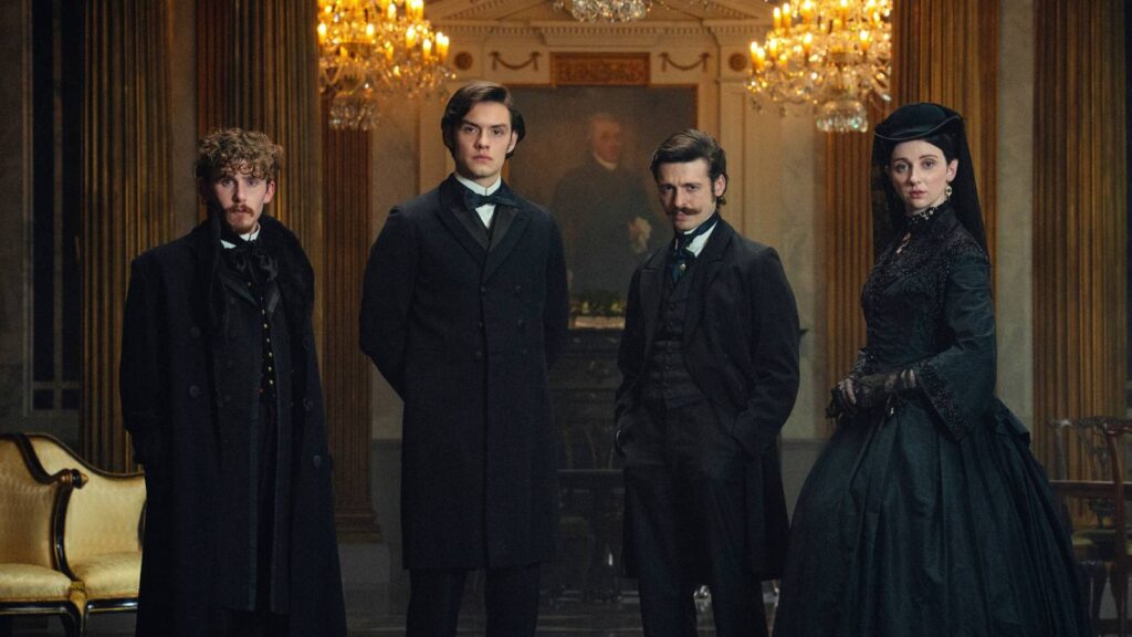 Луис Партридж в роли Эдварда Гиннеса, сидящего за столом и смотрящего вдаль в House of Guinness