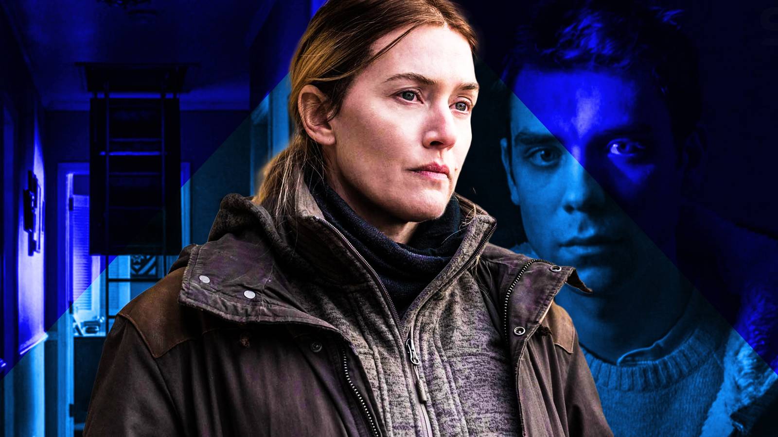 Промо-арт «Mare of Easttown» с Кейт Уинслет в роли главной детектива в форме.