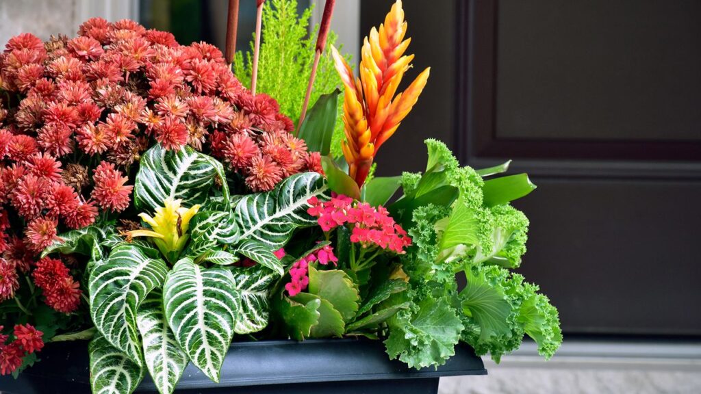 При посадке выбирайте растения, устойчивые к осенним условиям, например, хризантемы или хвойные. Регулярно поливайте и подкармливайте, чтобы растения оставались свежими и красивыми в течение всей осени.