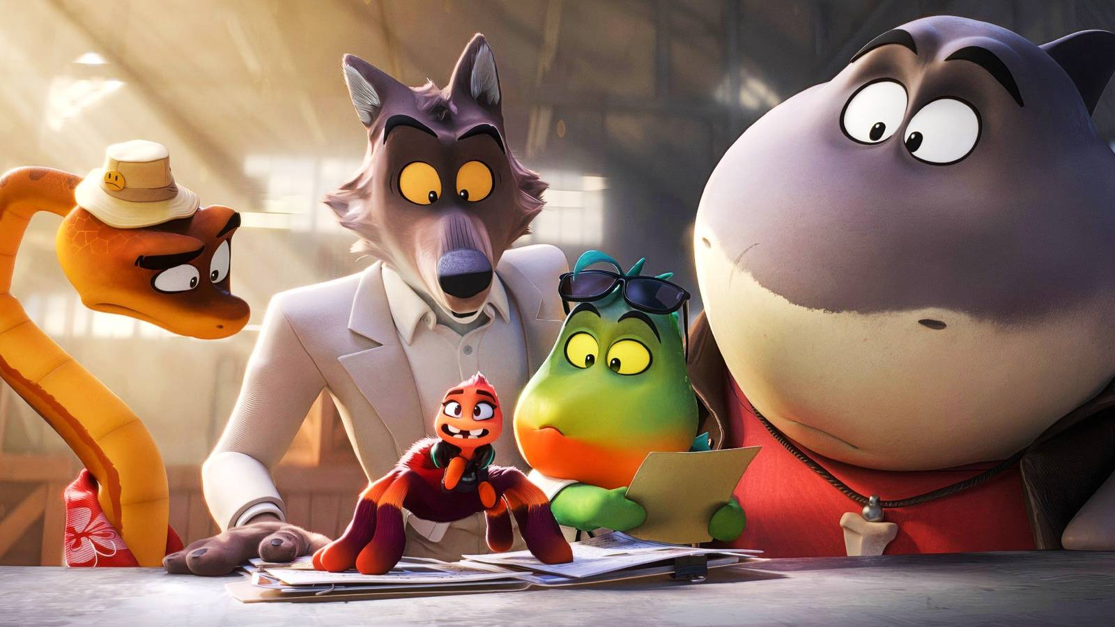 The bad guys looking shocked in The Bad Guys 2.
