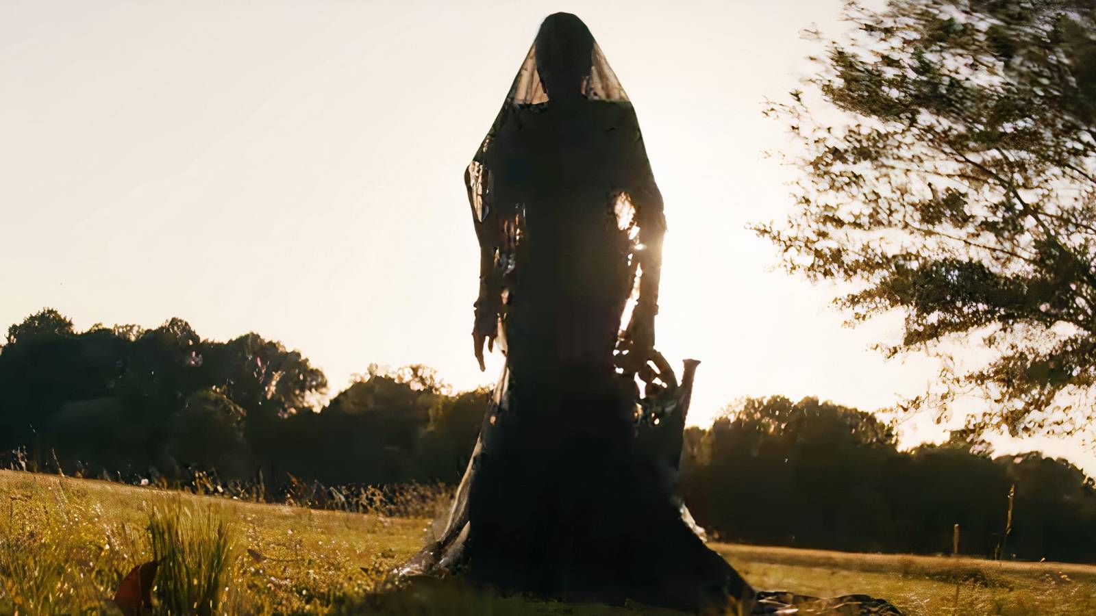 Женщина из "The Woman in the Yard", полностью одетая в черное
