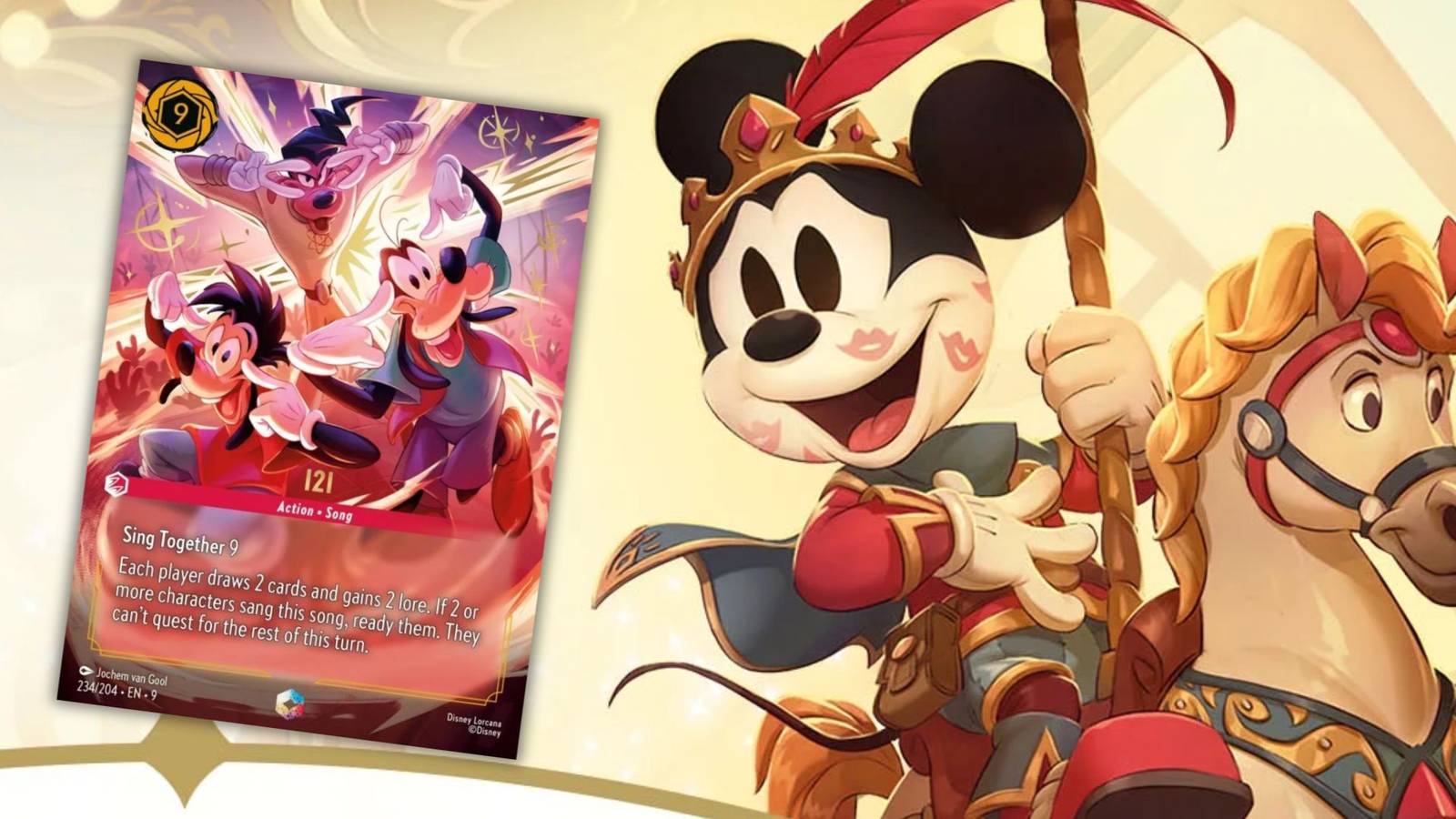 Одна из самых запоминающихся песен из The Goofy Movie, I2I вполне уместно является картой песни, которая помогает всем за столом, даже противникам. Для альтернативной волшебной версии эта карта полностью посвящена изображению. Трио Powerline, Max и Goofy на сцене – это миниатюрное произведение искусства само по себе.